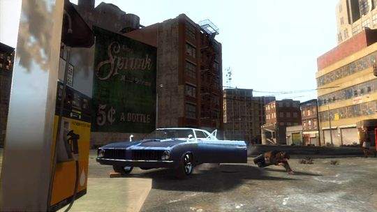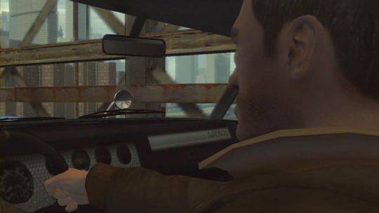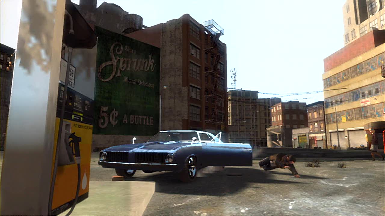 Zároveň jde vidět kus billboardu, na němž je vidět kousek nápisu zřejmě "LAST" (poslední). Také zde jdou vidět skoro prázdné odpadkové koše. Pak už Niko prochází pod tratí nadzemky a v pozadí jde zase vidět zelené auto staršího data, jak stojí na křižovatce. Zajímavé je, že se Niko dívá očima jiným směrem než předtím - možná se jedná o ono zaměření cíle ještě před vytáhnutím zbraně. A teď začína pořádná akce, Niko zběsile střílí z AK-47, možná do krásného červeného auta, které se objeví v dalším záběru. Za sporťákem stojí policejní auto a efekt prostřelení pneumatik a karoserie vypadá velmi realisticky.
