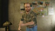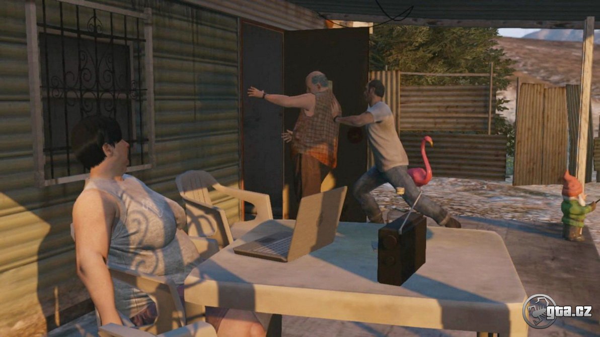 Náš oblíbený Trevor :) V pozadí vidíme dekorace plameňáka a trpaslíka. Že by něco z The Sims?