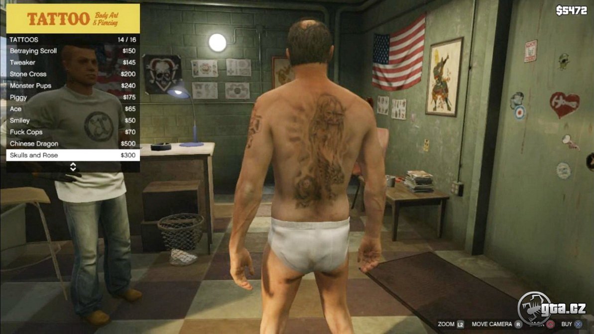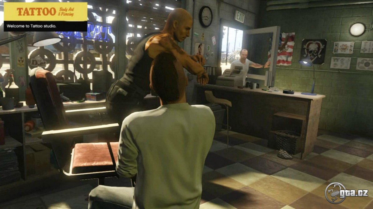 A přecházíme k dalším úpravám hráče. Tentokrát uvidíme Trevora v tetovacím salónu.