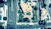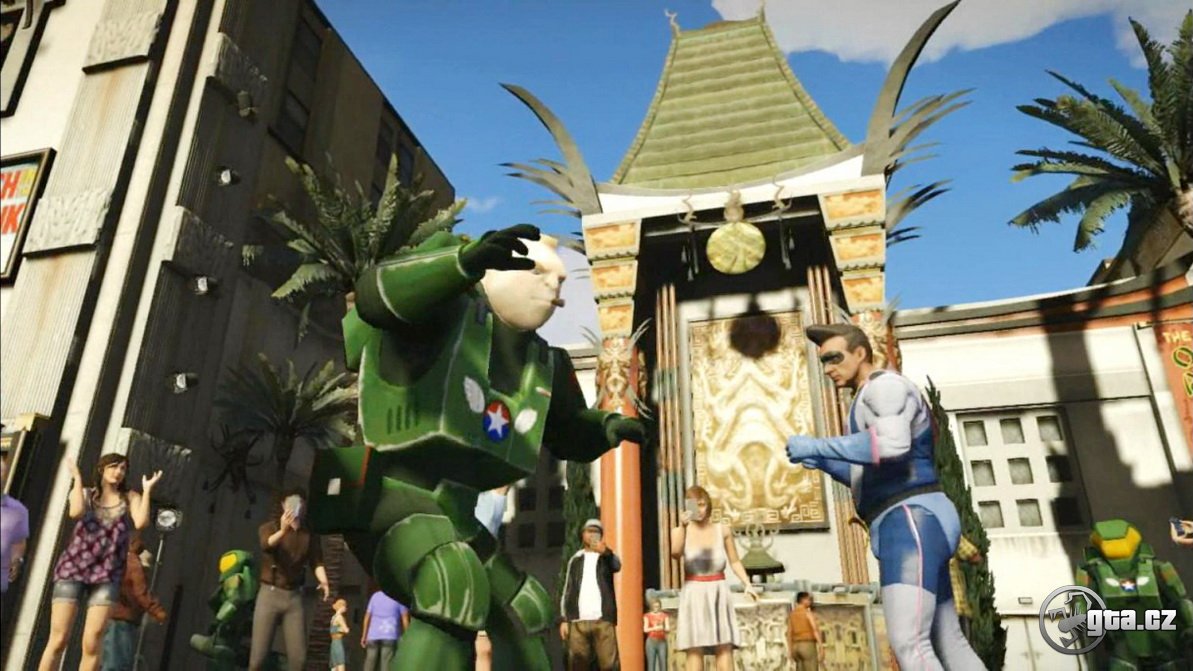 01. A začínáme prvním záběrem. Jde o záběr na downtown, který jsme už mohli vidět v minulých trailerech. Na silnicích si můžete všimnout aut, na chodníku chodců a ve vzduchu letící vzducholodě.